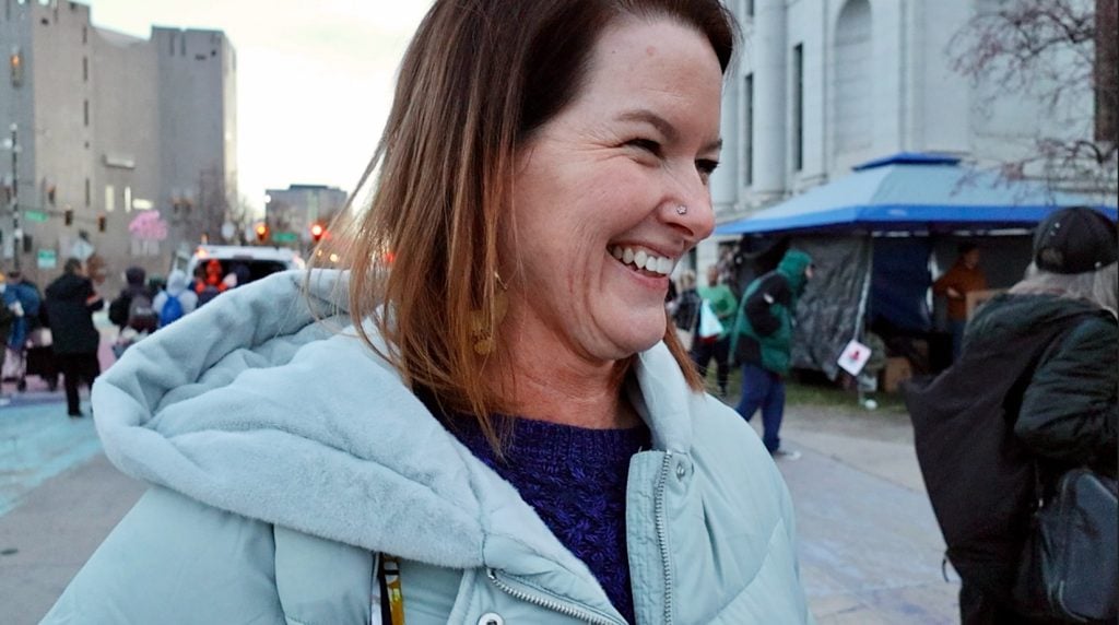 In 2020, amid the pandemic and as homelessness surged in the city, the nun began showing up at encampment sweeps several times a week to protest, as police were often reportedly poking holes in people’s tents, damaging personal property and handing out tickets.