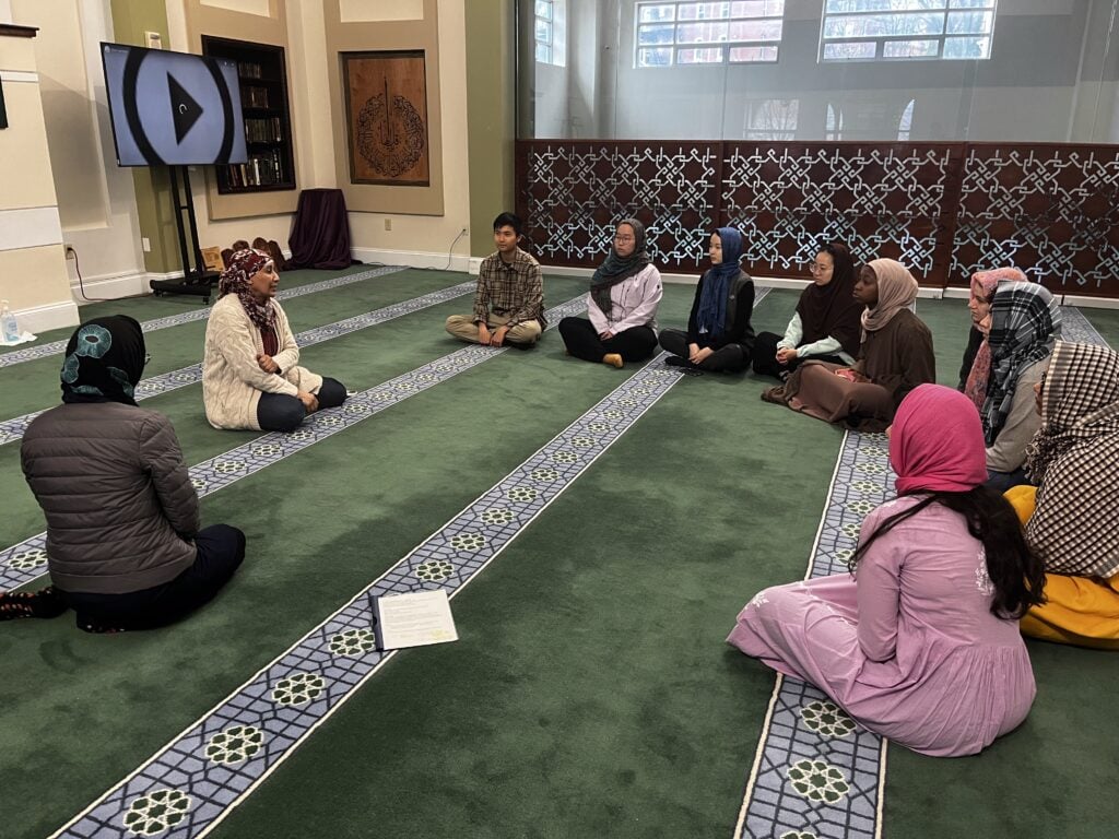 Students visit the Islamic Society of Boston on April 6, 2025 as part of the Interfaith Field Trip Week at Tufts University. Photo courtesy of Tufts