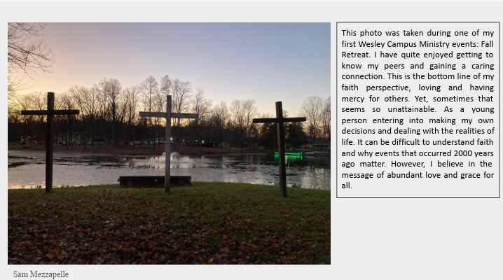 In partnership with Wesley Campus Ministry, Interfaith Photovoice, and the Miami University Office of Transformational and Inclusive Excellence, the Interfaith Center at Miami of Ohio facilitated a three-part interactive workshop series exploring faith, spirituality, and identity through personal photography and reflection. More than two dozen students and other campus community members were invited to capture and share photos exploring how their beliefs, practices, and values shape them and help them flourish. Participants were then invited to join in dialogue with one another in hybrid and in-person settings, over meals, and ultimately showcase their artwork at an end-of-semester celebration.