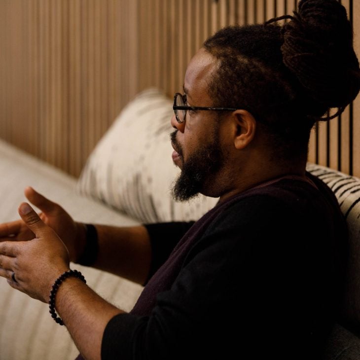 Jack Amos Holloway is a writer, music producer, film director, activist, minister, and dog-sitter based in Brooklyn, New York. Jack’s project, Despair Sanctuary, is a drone metal vigil where people of any background can hold negative emotions together in an immersive and cathartic experience. Attendees are invited to engage in a calming activity, hear poetry readings, listen to heavy music, and witness a live concert. Jack’s project blends public mental health approaches, spiritual practices, and secular music to invite all who are weary to be together.